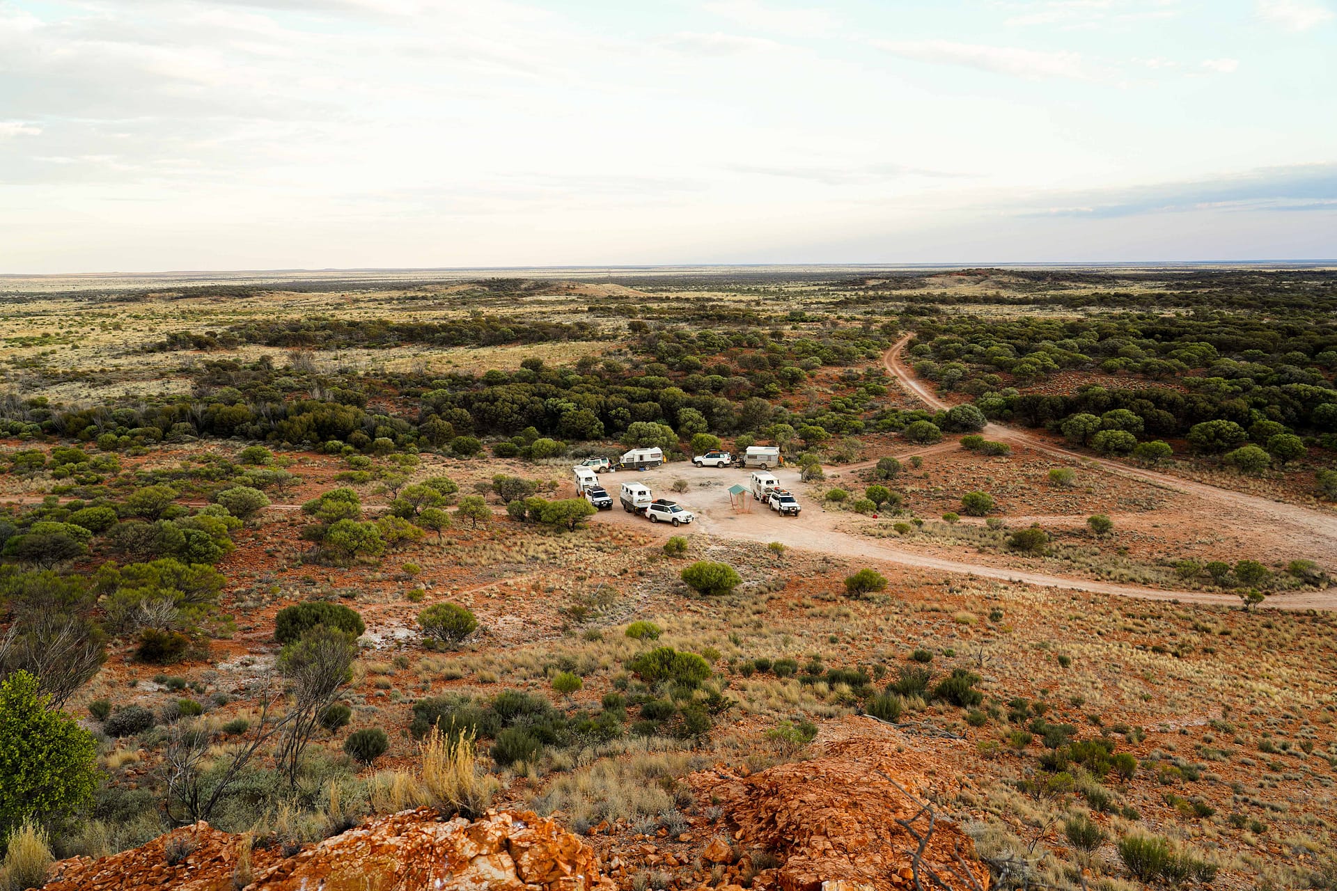 We congregated at the Gunbarrel Laager, just out of Wiluna, which is a logical kick off point for a Gunbarrel trip. Gil and Mal have done a great job tarting the place up, with a great undercover camp kitchen area and communal fireplace. A last taste of life’s little luxuries was on offer, with homemade ice cream, Devonshire teas and strong, hot showers in the donga style ablutions.